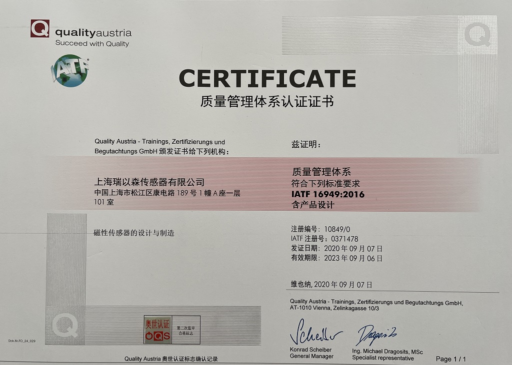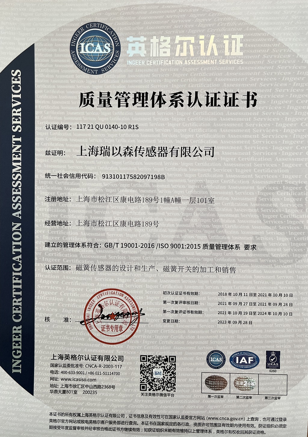上海瑞以森傳感器有限公司成立于2011年,是一家專注于磁性傳感器和汽車溫度傳感器、壓力傳感器、高性能熱敏磁性開關(TRS)的研發、生產及銷售的高科技企業。總部設立于上海市松江區康電路189號,并在韓國首爾設有辦事處。公司技術和研發實力雄厚,2019和2020年分別榮獲上海市高新技術企業和上海市“專精特新”中小企業稱號。